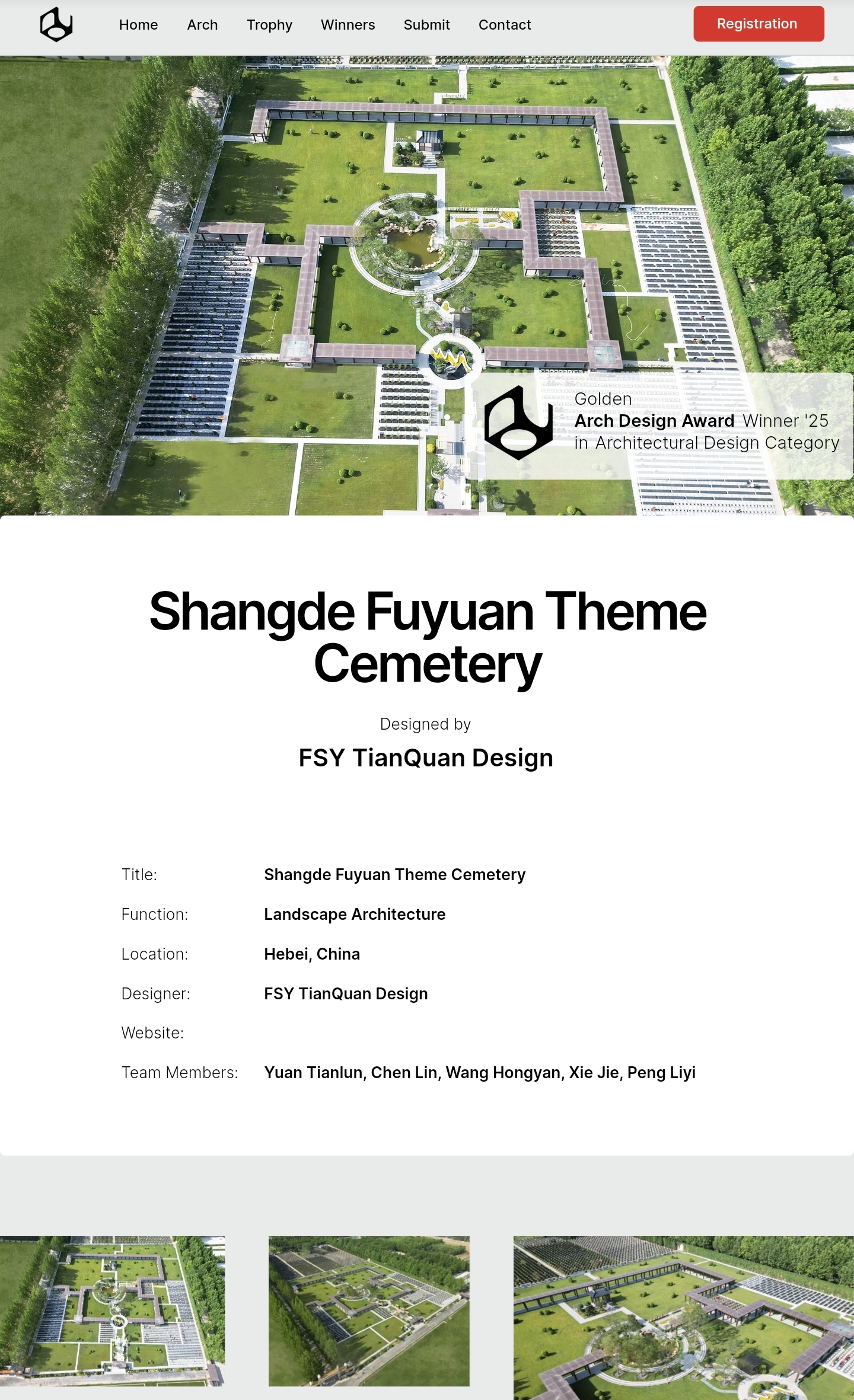 又双叒叕获奖啦!继入云山居之后,天泉佳境设计的【廊坊万寿园公墓·尚德府苑】在芬兰Arch设计大奖(Arch Design Award)的评审中赢得评委们的一致青睐,荣膺金奖。同时也将当代墓园设计内蕴的文化深度与独特美学语言,推向全球视野的焦点。