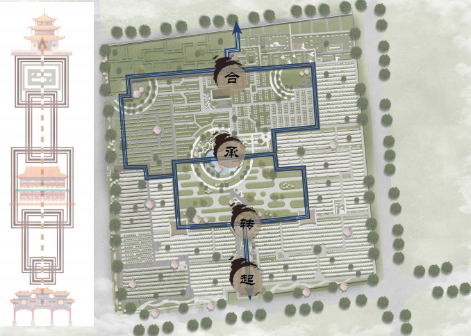 传统墓园的行列式布局如同一本摊开的线装书,平铺直叙却少了韵律。尚德府苑撷取中式民居“四合院”之精髓,将传统礼序与现代设计交融,打造出“三进院落式”墓区空间。以“一轴三进”为骨架,通过廊亭、水景、禅石砂境的串联,让墓区化作可游可憩的艺术园林。