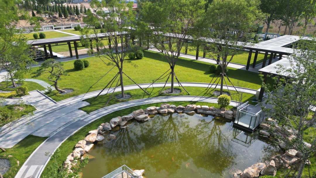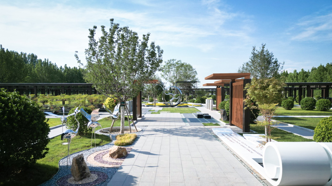 廊坊地处京津走廊,设计深挖地域文化基因,将燕赵大地的豪迈与水乡的婉约熔铸一炉。连廊的云纹雕花取材于当地非遗剪纸,碑石的肌理摹写易水砚的温润,甚至一草一木的栽植都暗合于民俗。