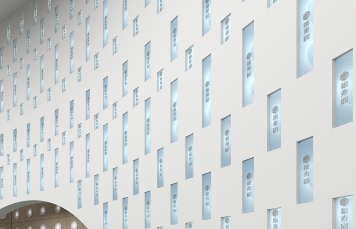 晶瑞凝晖墙具有储存与纪念双重功能。以四棱晶石为核心载体,模块化镶嵌入景观墙体,为逝者骨灰提供安全、密闭的储存空间。