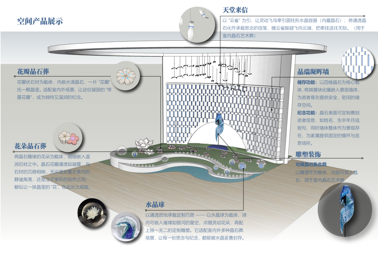 以通透的水晶球为载体,球内可嵌入璀璨如银河的星空,点缀灵动的永生花,再配上独一无二的定制雕塑。它适配室内外多种晶石葬场景,让每一份思念与纪念,都能被水晶妥善封存,成为永恒的记忆。