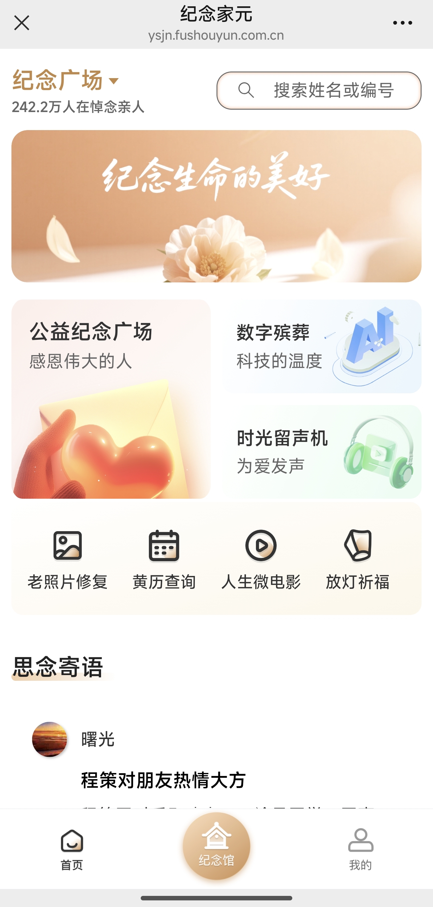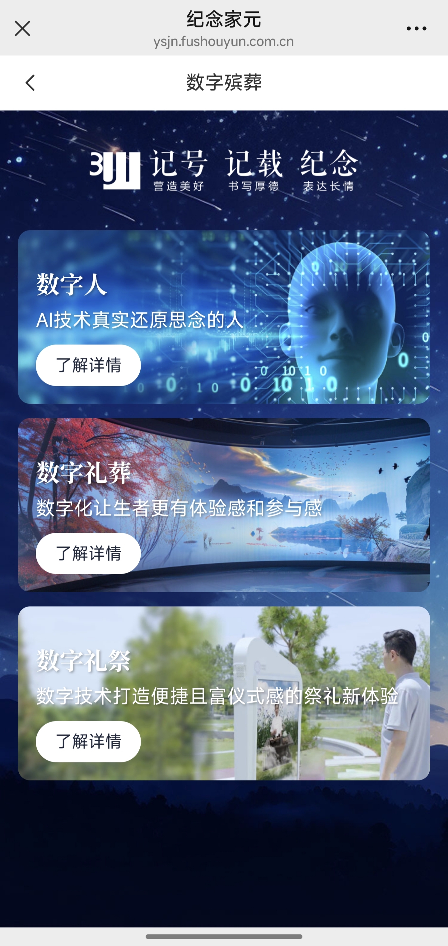 回顾行业发展的四个阶段:从卖墓地、造园林,到融入人文与艺术,再到迈向智能化的“4.0时代”,聚焦碳基与硅基生命的双重留存。因此,在晶石葬之外,福寿园还引入了AI数字纪念空间,构建了一个可交互、可延展的云端纪念场所。亲友们可以在这里浏览逝者的生平事迹,留言追思,点灯祈福,甚至收到由AI生成的、模拟逝者音容的定制寄语视频。