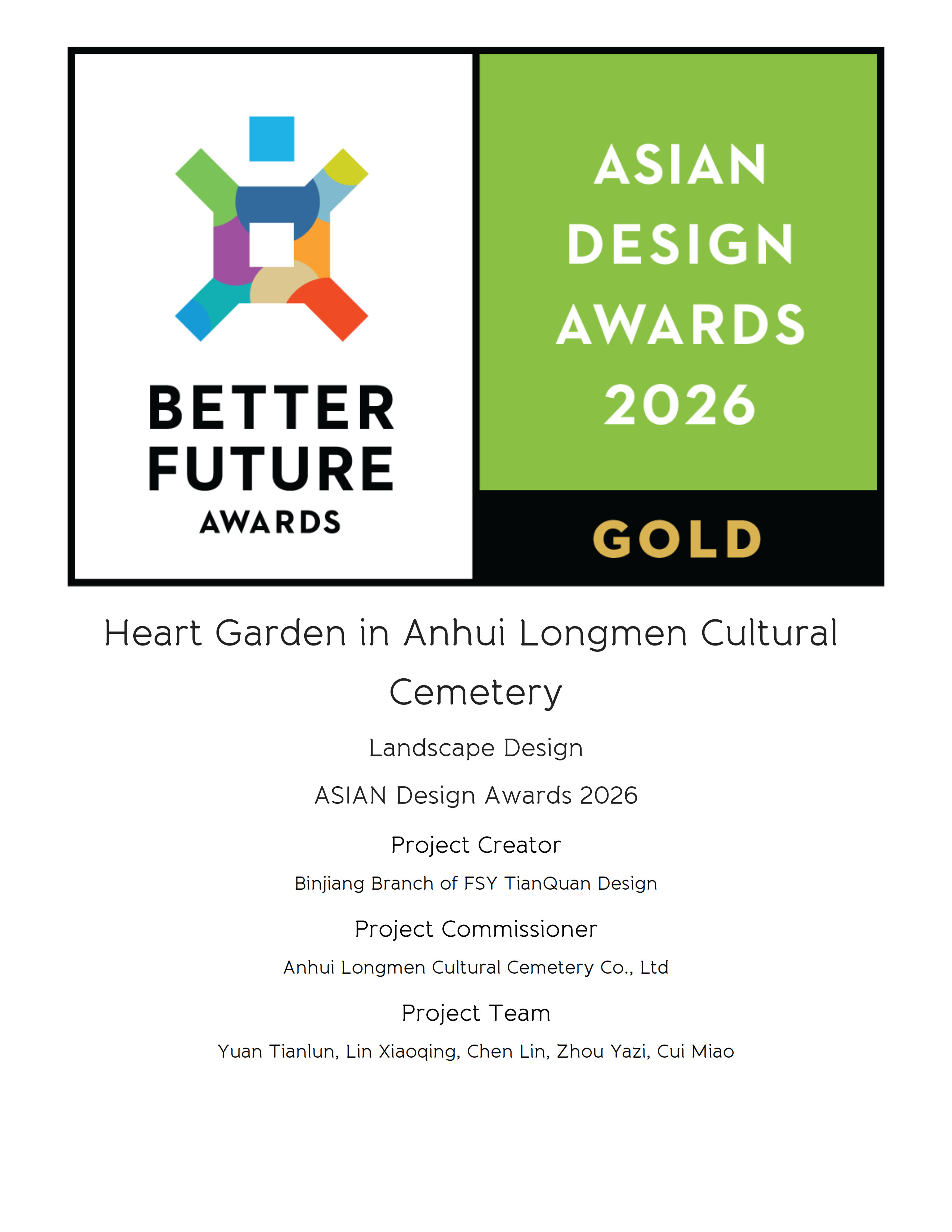 新年伊始,捷报欣传!在2026年的开岁之月,天泉佳境设计作品【安徽龙门文化陵园·归心里主题墓园】于亚洲设计大奖评选中绽放光彩,凭借卓越的设计理念与创新实践,一举斩获金奖,为新春锦上添花,亦为行业再添华彩!