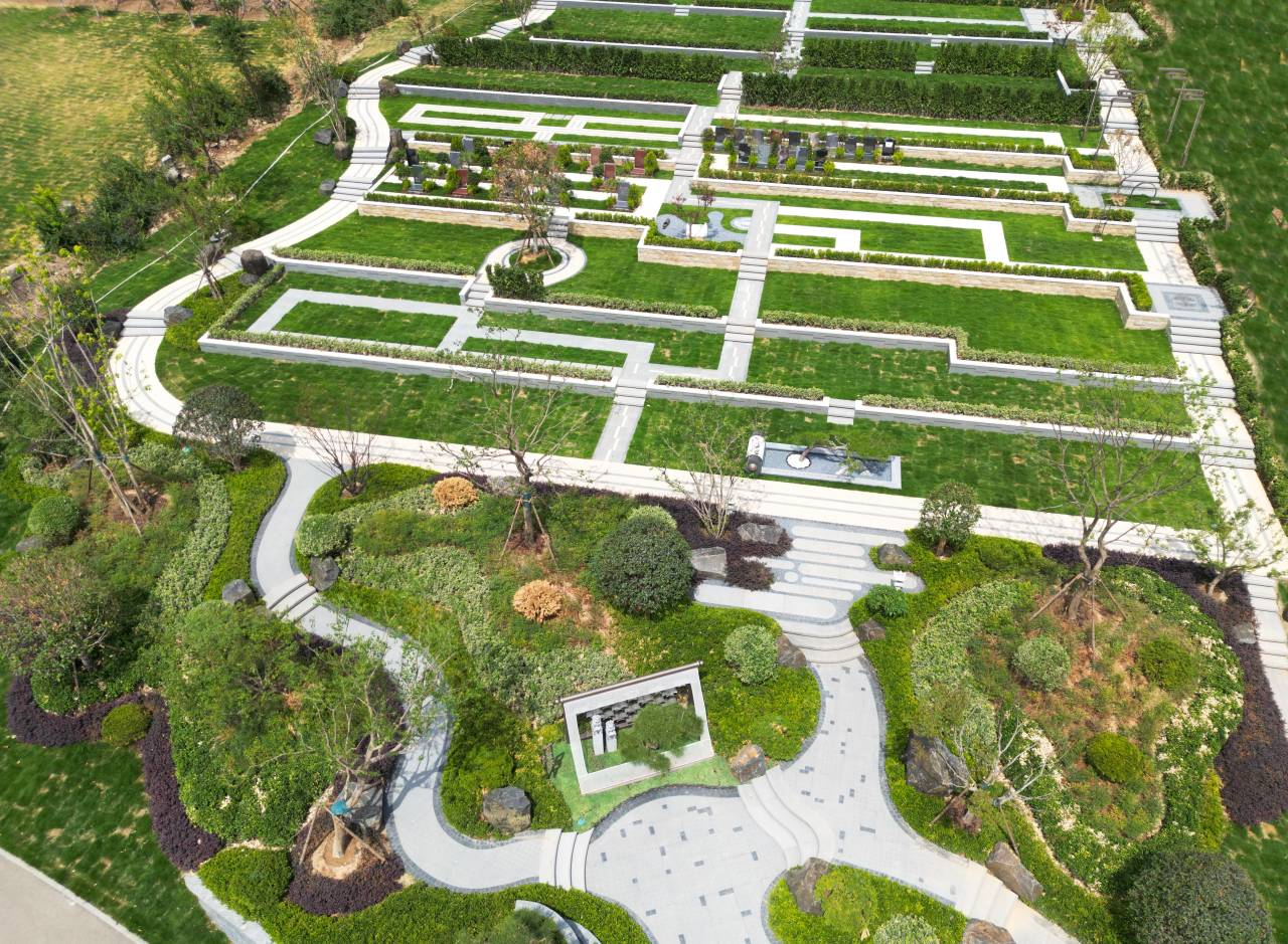 真正的关怀,体现在每一个细节:建材本地化,缩短了运输的足迹。彻底摒弃高碑大墓,转向“小而精”的艺术化墓碑。每一座墓碑都经过独特构思,墓前配以精心设计的微景观,真正实现 “一墓一景,一景一世界” 。